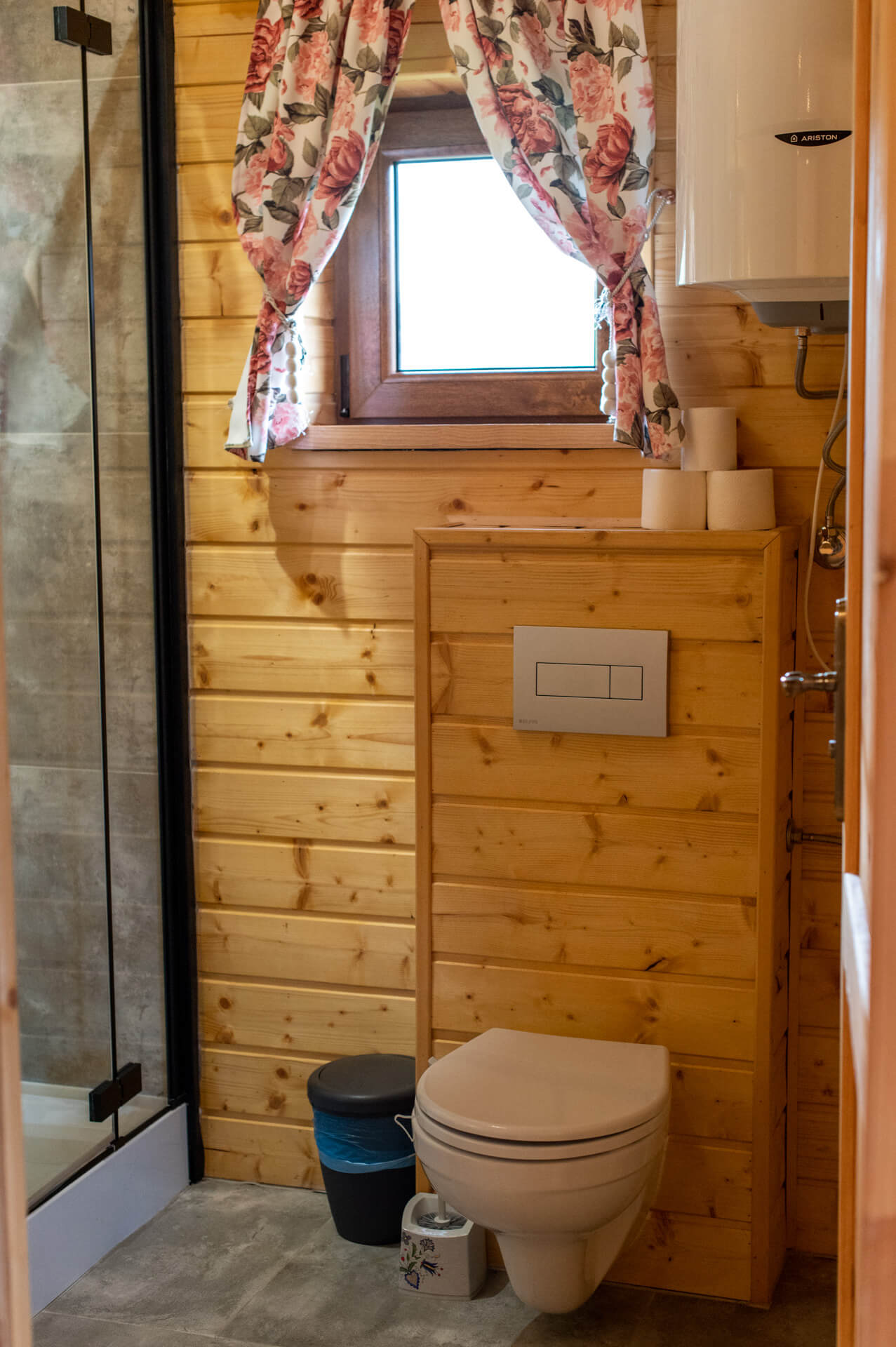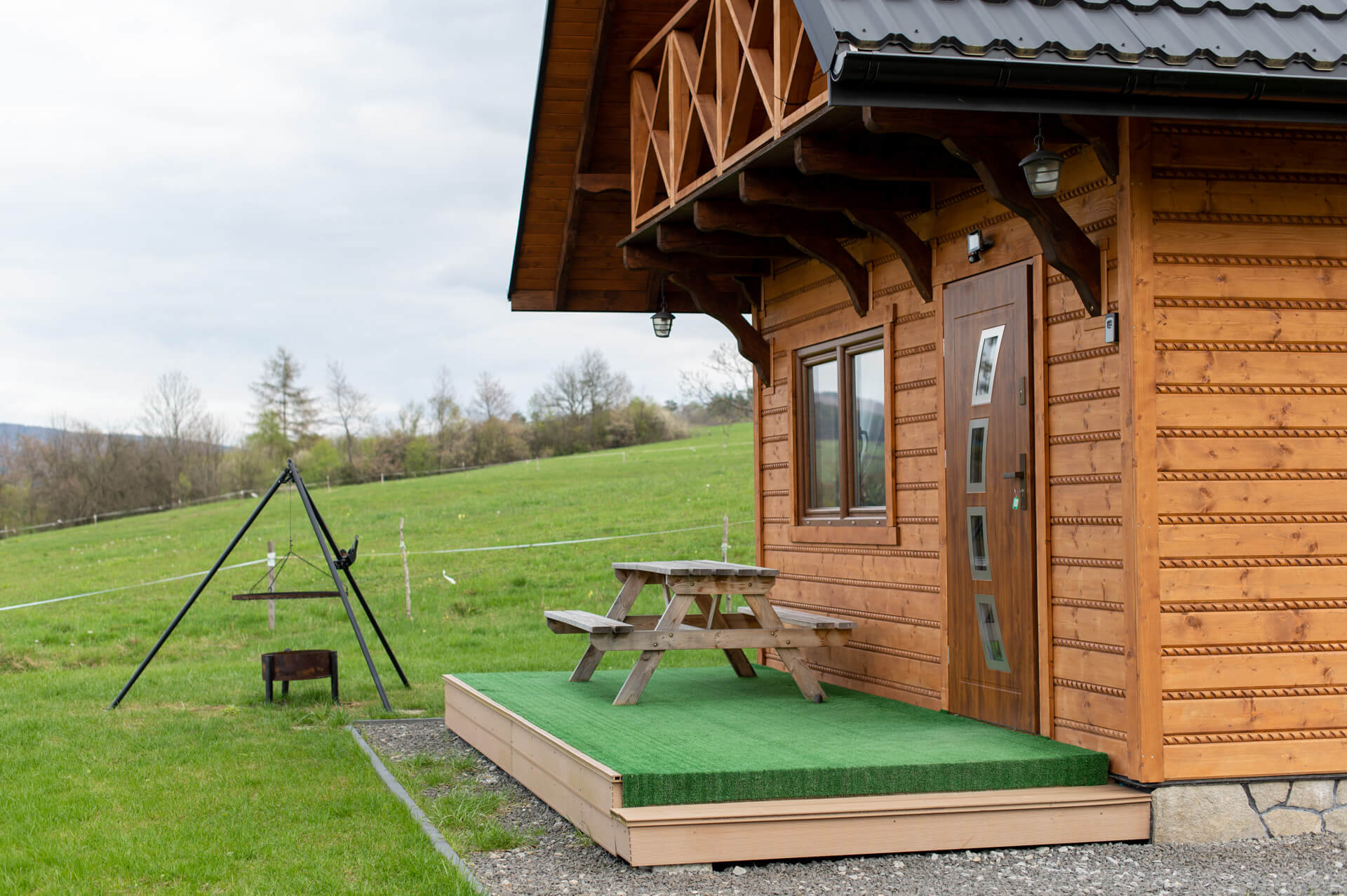 Obiekt położony w malowniczym miejscu na wzniesieniu, na obrzeżach miejscowości. To doskonały wybór dla osób, które cenią ciszę i bliski kontakt z naturą. Do dyspozycji Gości, oddane zostały dwie sypialnie, nowoczesny salon z aneksem kuchennym. Z balkonu roztacza się piękny widok na przydomowy ogród. Wyposażenie domku obejmuje także sprzęt taki jak telewizor plazmowy, bezpłatną sieć WiFi, sprzęt do grillowania i niezbędne udogodnienia. Dzięki przestronnemu tarasowi, Goście mogą podziwiać okoliczną przyrodę.