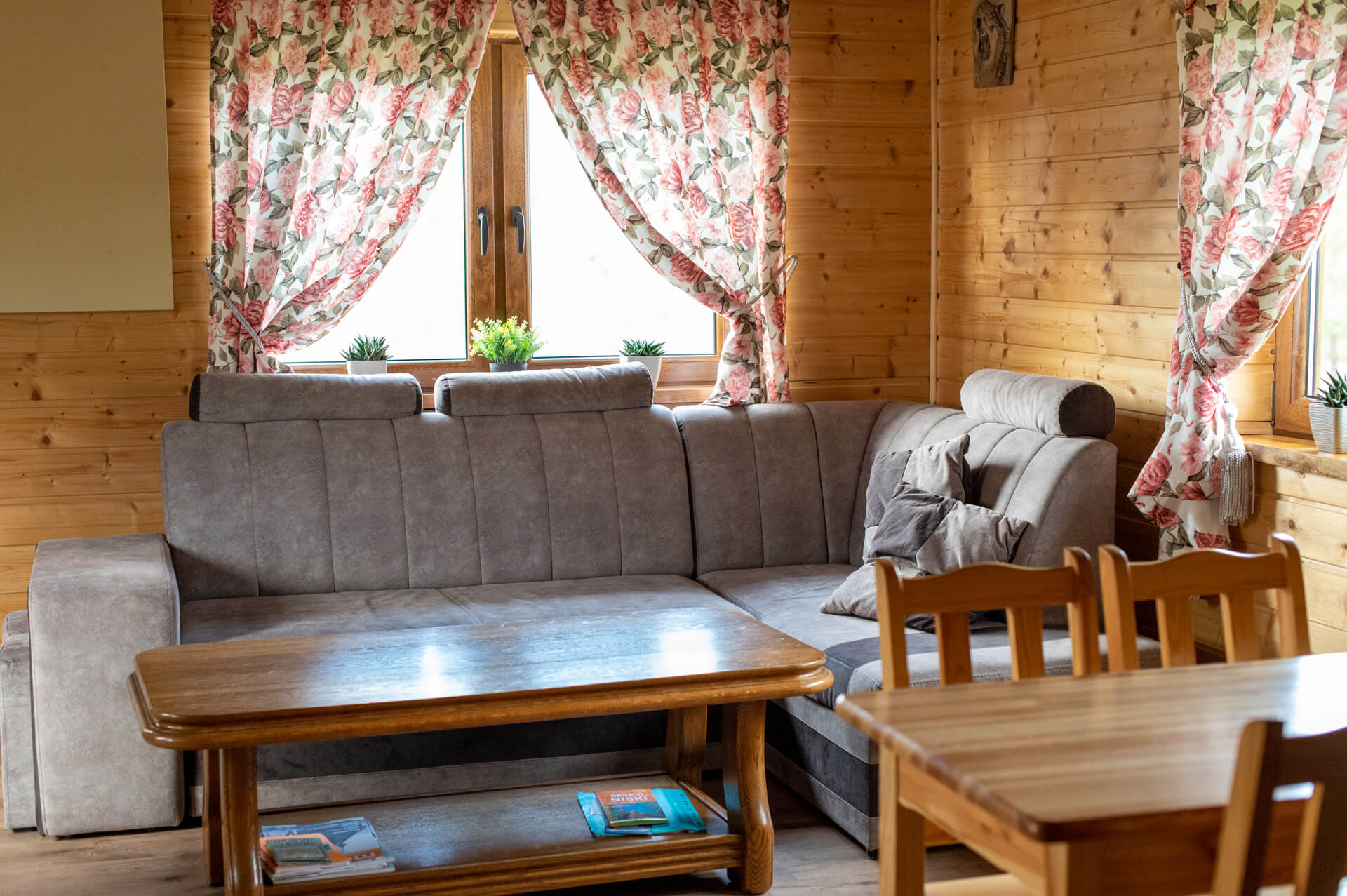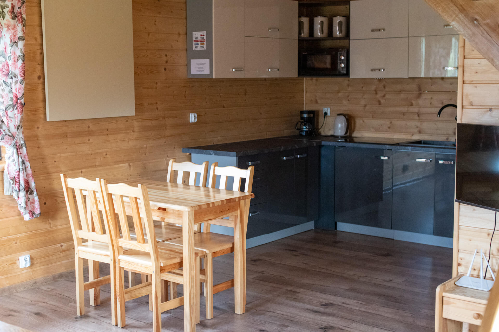 Salon połączony jest z wyposażonym aneksem kuchennym. W salonie mieści się wygodna sofa, na której również można się wygodnie przespać. W salonie znajduje się stół z krzesłami.